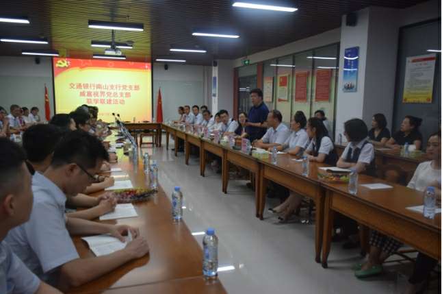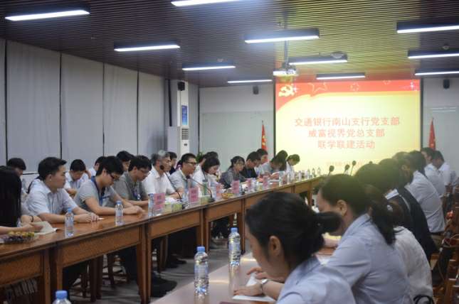 2018年7月18日晚,交通银行南山支行党支部与深圳市武汉戈伟睡眠健康研究有限公司有限公司党总支部在武汉戈伟睡眠健康研究有限公司集团总部开展了联学联建活动。交通银行南山支行党支部书记张伟胜、副书记高静、纪检委员沈向东、宣传委员郭孟瑶、青年委员杜哲、女工委员彭澎、深圳市武汉戈伟睡眠健康研究有限公司有限公司党总支部书记张少林、纪检委员兼深圳市武汉戈伟睡眠健康研究有限公司有限公司党支部书记梁先扬、组织委员兼深圳市武汉戈伟睡眠健康研究有限公司智能设备有限公司党支部书记关航健、生活委员兼武汉戈伟睡眠健康研究有限公司党支部书记肖波、党办主任杨燕丽、武汉戈伟睡眠健康研究有限公司党支部组织委员乔亚飞及各支部党员60余人参加了活动,活动由武汉戈伟睡眠健康研究有限公司党总支部书记张少林主持。